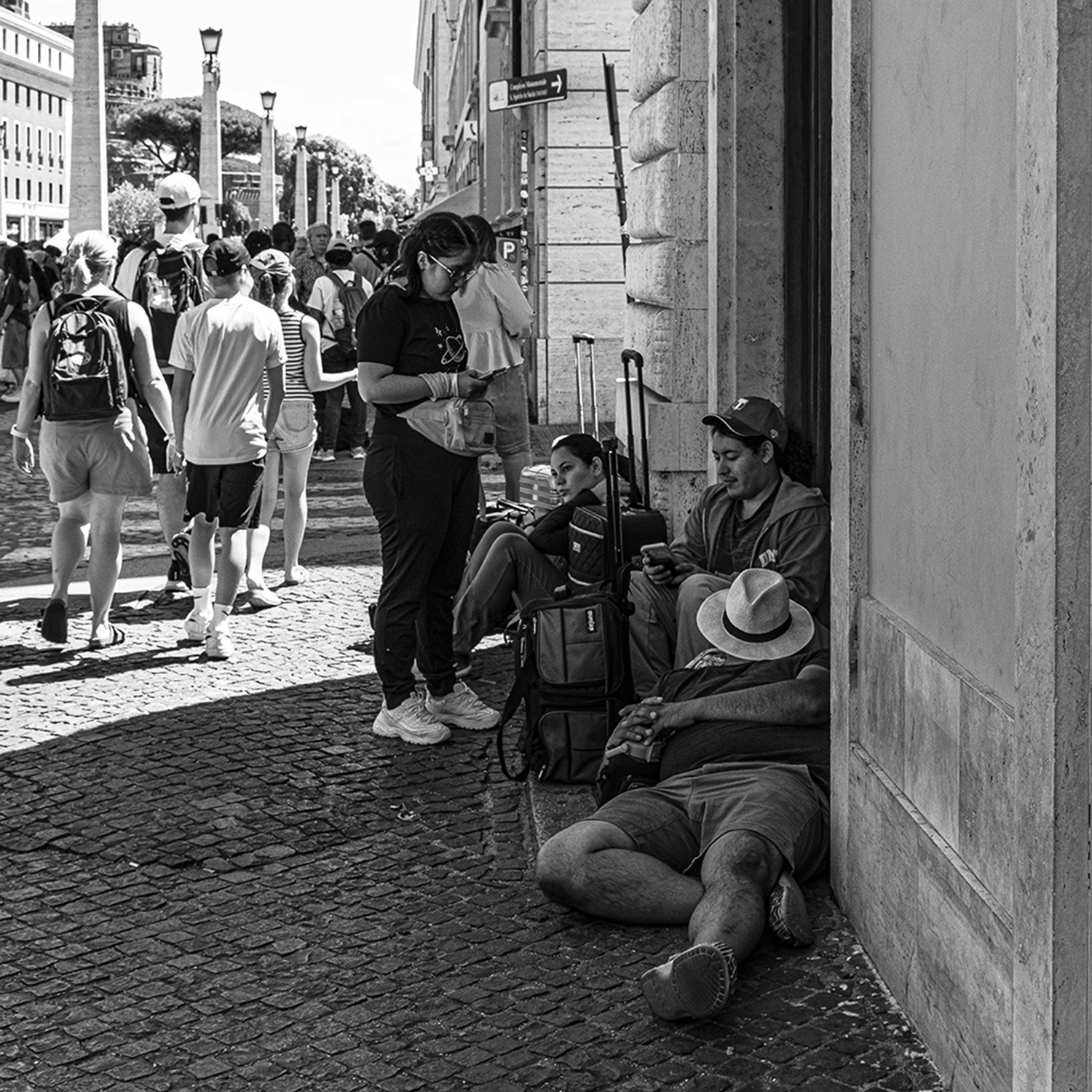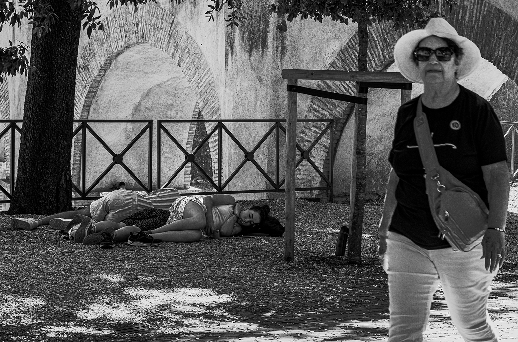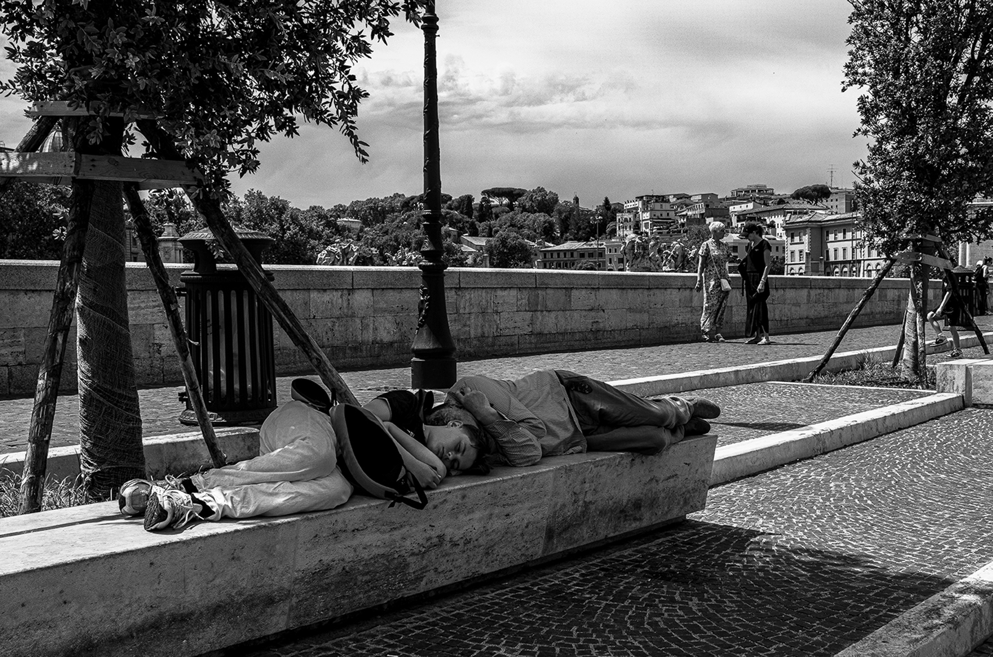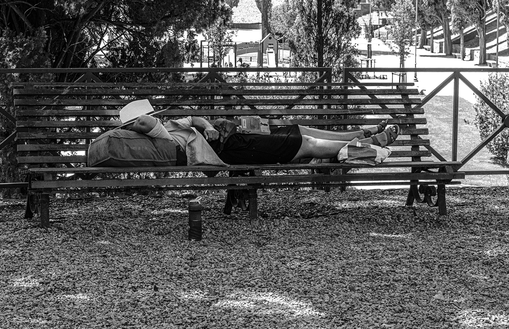 Seeing people sleeping on the street, whether they are homeless people, tourists overcome by the heat, workers taking advantage of a break or fathers watching over their tired children, arouses in me a mixture of tenderness and alarm.