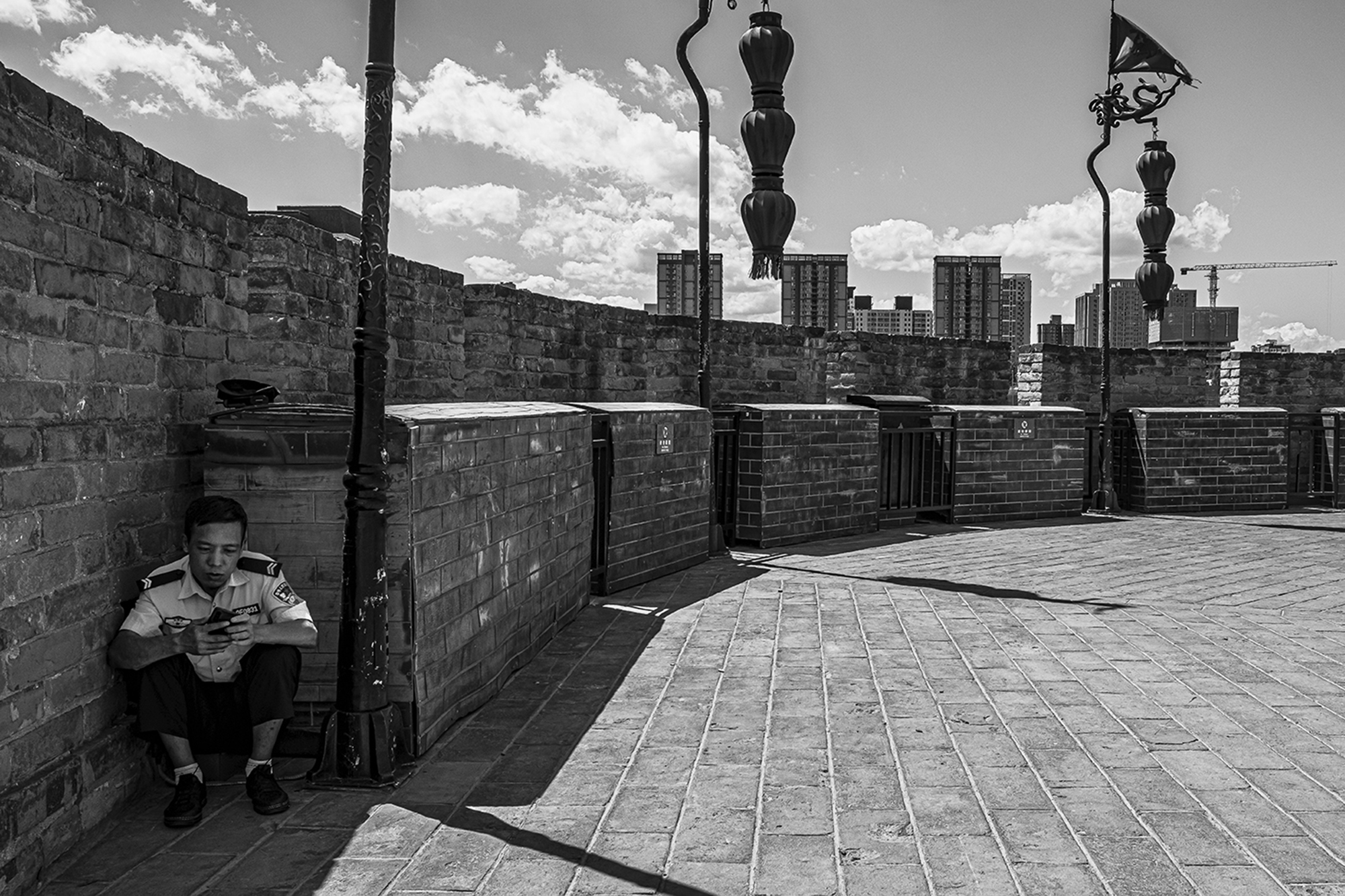 Looking for a corner of shade on the ancient walls. Xian (China), 18 August 2025.