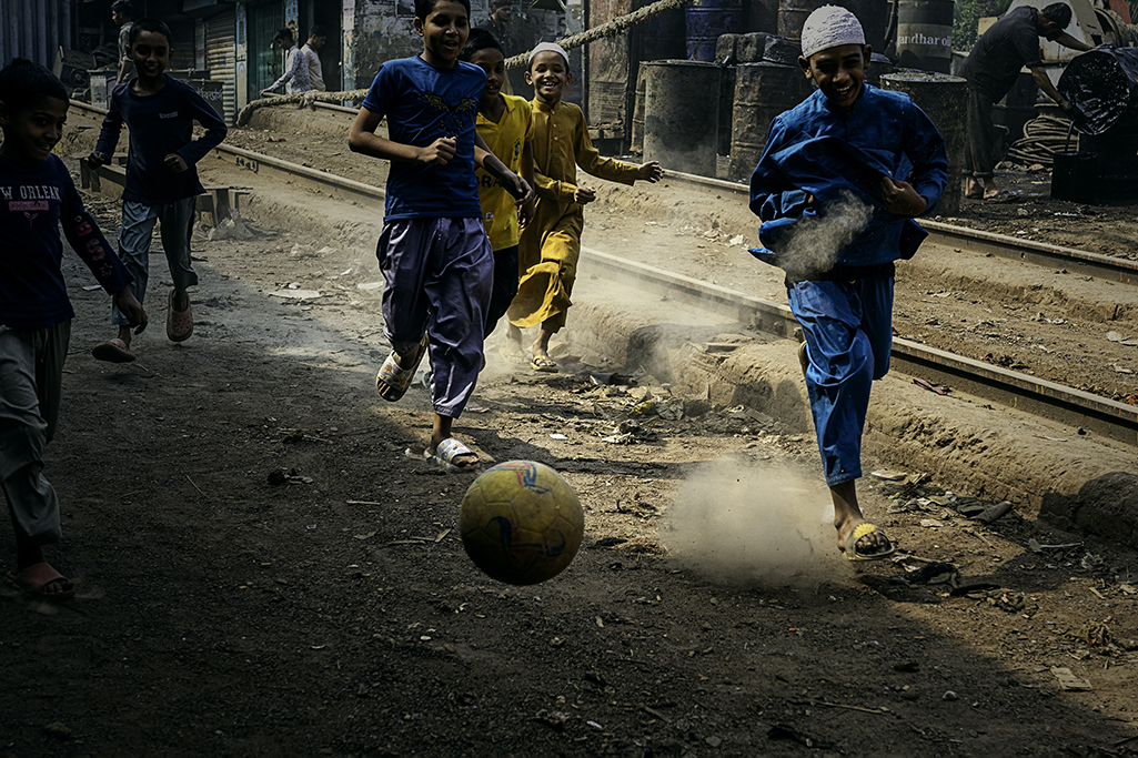 They chase a worn-out ball with the same passion as if it were treasure, crafting joy out of ruin. The cropped top mirrors their reality — a childhood where so much has been cut away, yet somehow, the laughter still echoes. What remains is not just a game, but a quiet, defiant celebration of life.